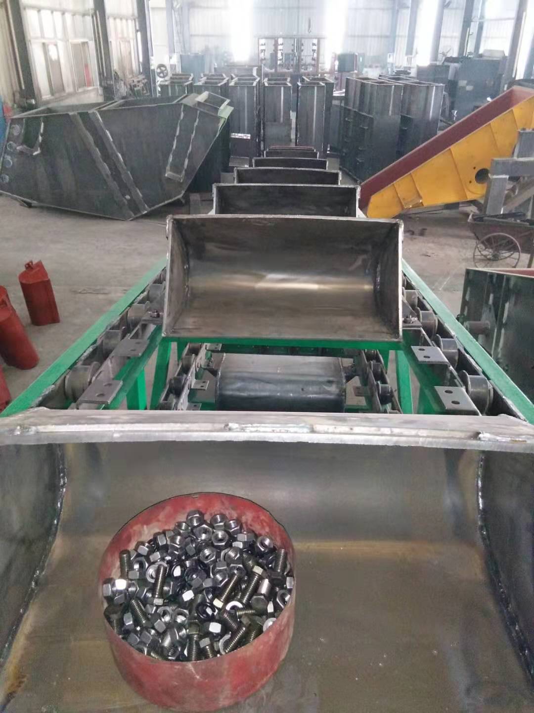 鏈斗輸送機的料斗寬度分別有350mm、450mm、630mm、800mm、 1000mm五個規格,根據不同的運行場合及環境要求,鏈斗輸送機分敞開型、半封閉型和全封閉型三種形式。用戶可根據附表中的參數選擇機型,并提出具體的布置形式及尺寸、輸送產量、物料參數和其他要求。該機適用于各種粉狀、塊狀散裝物料的水平或傾角≤60°的輸送,特別適宜一些溫度高、容量大、塊頭大、具有鋒利棱角和磨琢性強的固體物料的輸送。鏈斗式輸送機(鏈斗輸送機)產品廣泛應用于電站、礦山、煤炭等行業的,進行各種松散物料的輸送;如:鍋爐灰渣、水泥熟料、礦渣、焦炭、碎石等,特別是一些溫度高、容重大、塊度大、具有鋒利銳角和磨琢性強的物料。