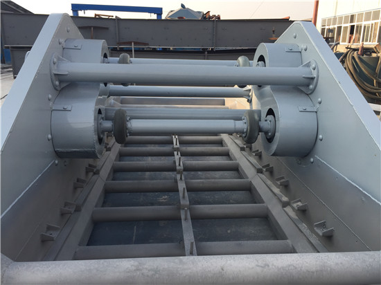 采用了雙電很自同步技術,通用型偏心塊、可調振幅振動器。主要由篩箱、激振器、支承系統及電機組成。通過膠帶聯軸分別驅動兩個互不聯系的振動器作同步反向運轉,兩組偏心質量產生的離心力沿振動方向的分力疊加,反向離心抵消,從而形成單一的沿振動方向的激振動,使篩箱做作往復直線運動。篩箱內篩板由進料口至出料口呈負角度安裝,使液體物料在篩板上做爬坡運動,加上振動,從而達到脫水的效果。鉀長石專用脫水篩采用了雙電 自同步技術,通用型偏心塊、可調振幅振動器。主要由篩箱、激振器、支承系統及電機組成。通過膠帶聯軸分別驅動兩個互不聯系的振動器作同步反向運轉,兩組偏心質量產生的離心力沿振動方向的分力疊加,反向離心抵消,從而形成單一的沿振動方向的激振動,使篩箱做作往復直線運動。